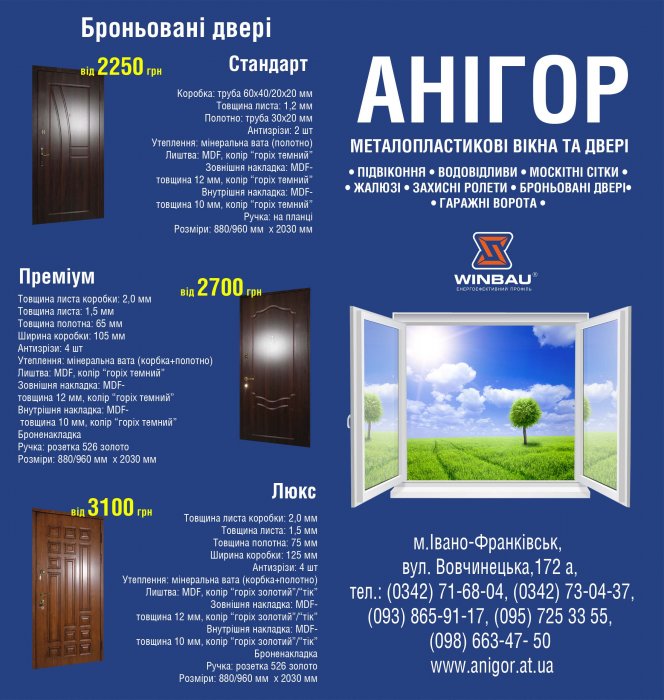 Металопластикові вікна та двері. Підвіконня. Водовідливи. Москітні сітки. Жалюзі. Захисні ролети. Броньовані двері. Гаражні ворота.