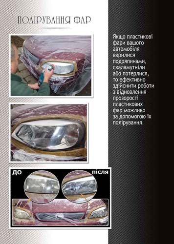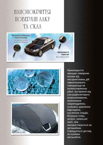 Захисне нанопокриття кузова автомобіля. Зовнішній стайлінг вініловими плівками. Хімчистка салону автомобіля. Антигравійна захисна плівка. Полірування кузова авто. Полірування фар. Озонування салону