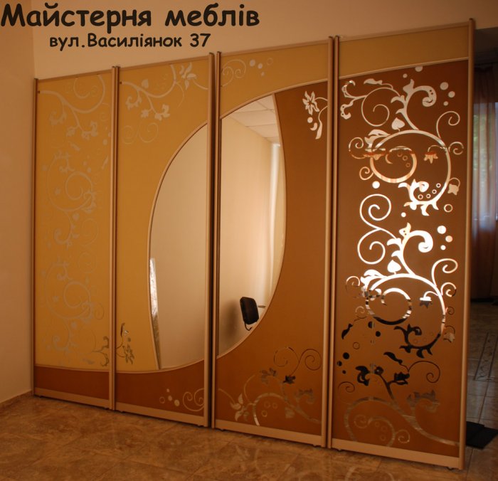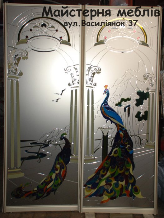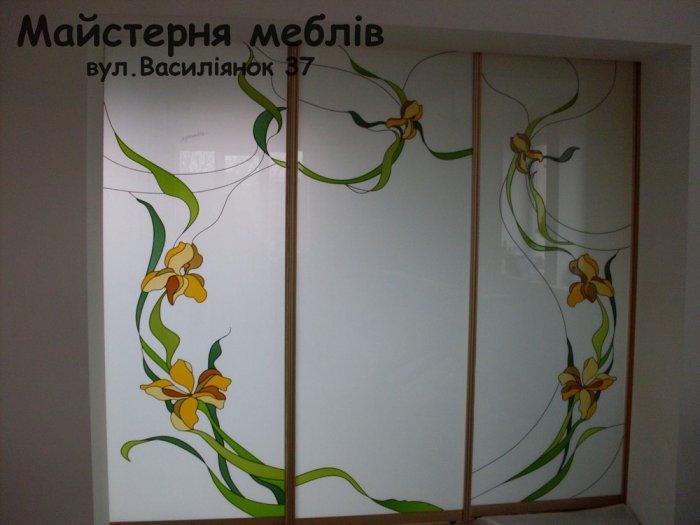 Художні вітражі в шафи-купе, кухонні меблі, вікна, двері, перегородки, стелі.