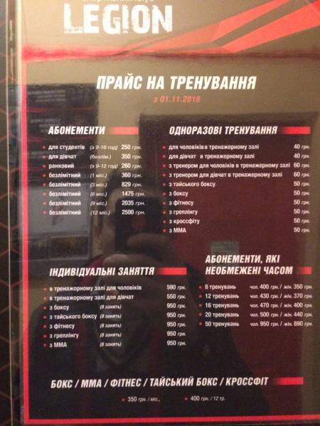 У спортивному клубі «Легіон» до ваших послуг: