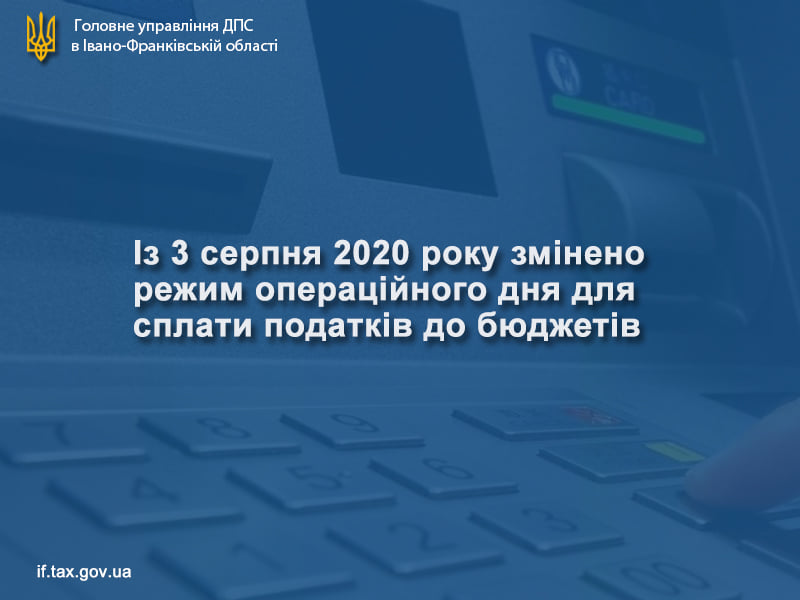 Із 3 серпня 2020 року змінено режим операційного дня для сплати податків до бюджетів.