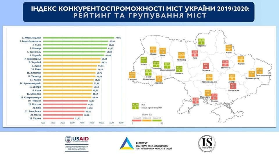 Івано-Франківськ зайняв 2 місце серед міст з найбільш сприятливим бізнес-кліматом та ефективним економічним врядуванням!